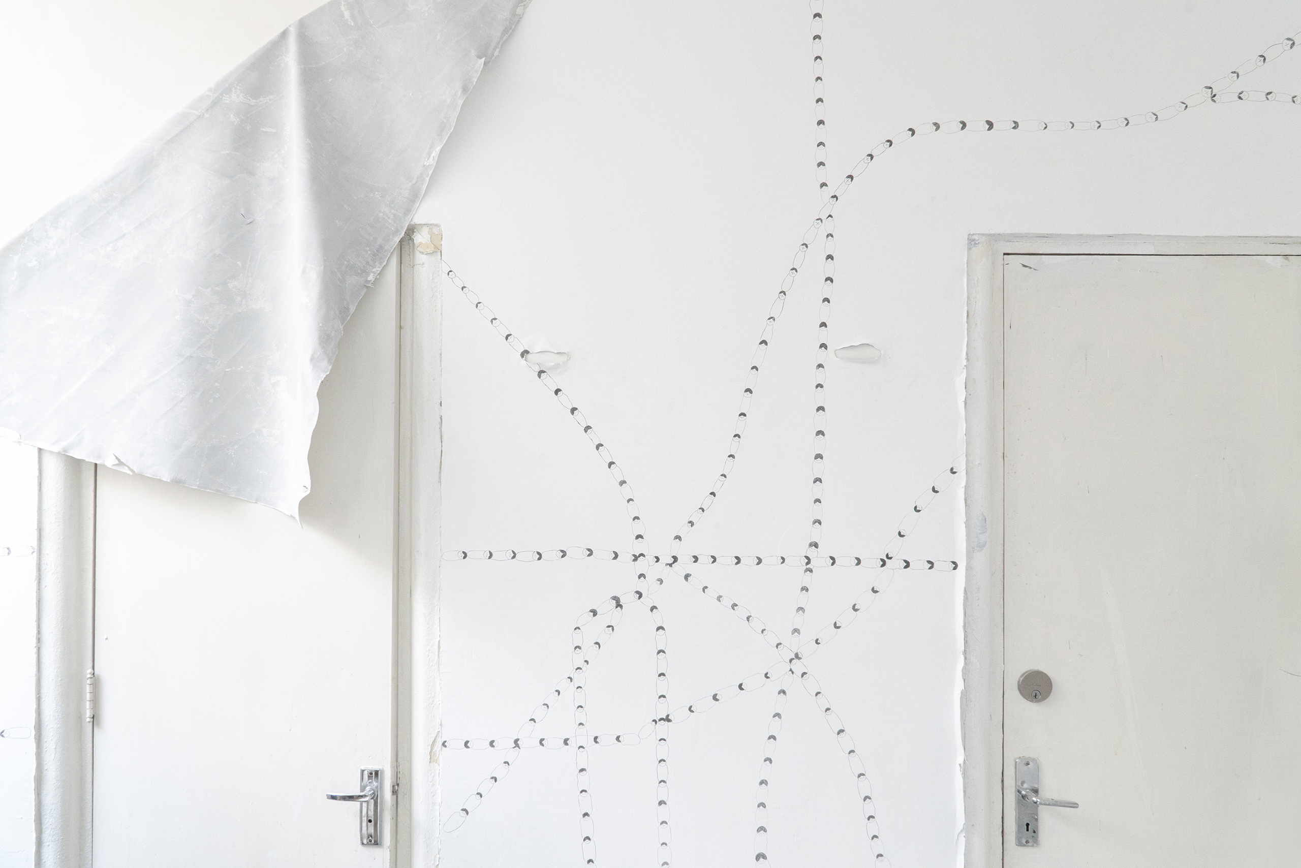Estes trabalhos foram produzidos durante a nossa residência no programa Pinturas Rupestres da fundação/op.cit., uma organização sem fins lucrativos que trabalha com formatos experimentais da arte contemporânea com o objetivo de expandir o contexto de práticas artísticas da Cidade do México. E que tem por missão o fortalecimento dos laços entre as comunidades artísticas nacionais e internacionais, aproximando novos públicos por meio de espaços de encontro, convivência, aprendizado e diálogo. A particularidade do programa Pinturas Rupestres, ativo desde 2023, é permitir que cada artista convidado trabalhe a partir de suas próprias práticas e pesquisas pictóricas, utilizando os suportes com os quais costuma trabalhar, para aplicá-los diretamente nas paredes da residência, previamente preparadas com uma técnica de restauro desenvolvida especialmente para o projeto. Tal técnica permite a remoção da camada mais externa de todas as superfícies do espaço e que, ao final da estadia de cada artista, permitirá que as obras realizadas sejam preservadas e integrem o arquivo da instituição, possibilitando, inclusive, a futura circulação dessas produções.